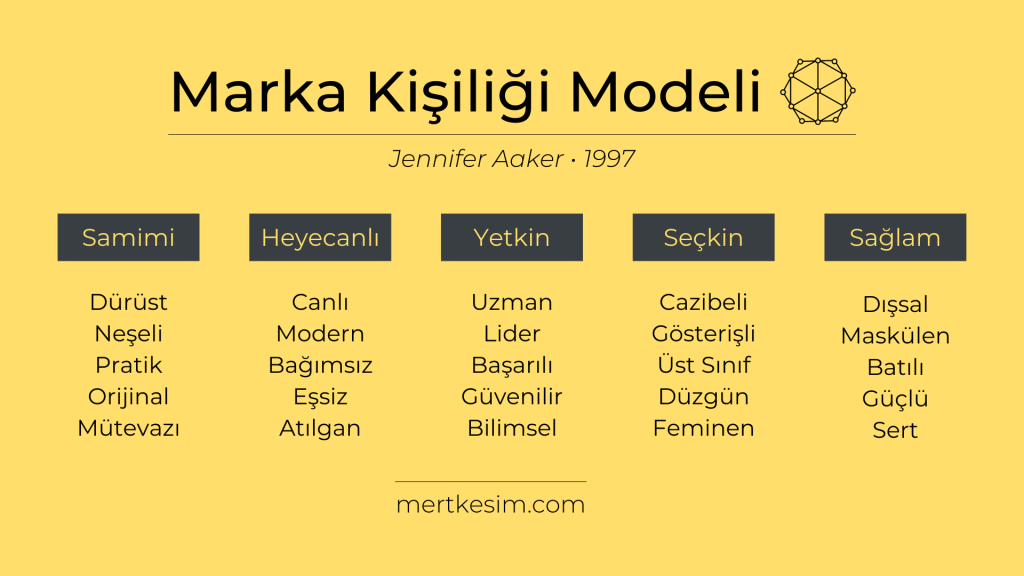 Kişiliği markanın Y eksenine koyabiliriz. Kişilik, markanın bize nasıl bir varlık olduğunu soyut açıdan belirtir. En çok bilinen marka kişilik modeli 1997 yılında Jennifer Aaker tarafından ortaya atıldı.